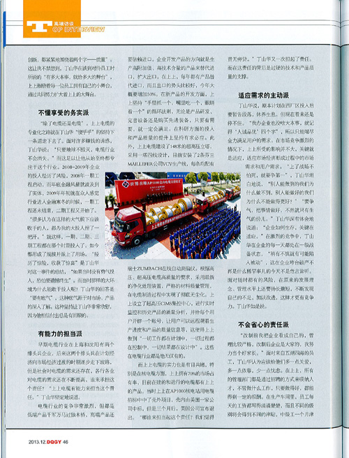 丁山華的姿態正如他那棗紅色的格子衫般嚴謹、篤定、始終不渝,使得揮別的背影在腦海里不斷浮現。在離開這座蘇南小城的路上,突然想起溧陽的一句外文用語:一個溧陽,萬種風情。我想,丁山華領導下的上上電纜應該是這萬種風情中必不可少的一種。