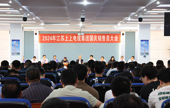 10月5日,2024年國慶銷售員大會(huì)在江蘇上上電纜集團(tuán)西廠區(qū)報(bào)告廳舉行,集團(tuán)董事長(zhǎng)丁山華、總經(jīng)理丁志鴻等公司領(lǐng)導(dǎo)出席大會(huì)。會(huì)議由副總經(jīng)理高勤凱主持。來自市場(chǎng)一線的銷售人員及內(nèi)勤服務(wù)人員參加會(huì)議。