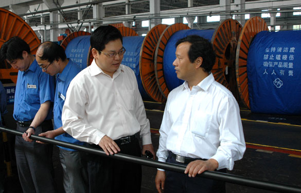 考察團現場聽取了上上集團關于公司概況、體系認證、主要產品的生產狀況、生產工藝、生產與檢測設備、技術研發,以及銷售業績等狀況的介紹。同時,中海油也介紹了有關電纜的需求及技術要求,上上集團與考察團各成員進行了友好的洽談,并相互交換了意見。