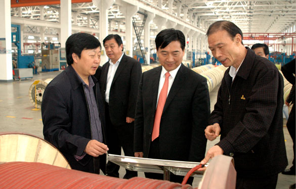 3月29日,南陽市委常委、鄧州市委書記姚龍其率領鄧州市黨政代表團一行來江蘇上上電纜集團參觀考察。溧陽市委書記盛建良陪同考察。集團董事長、總經理丁山華,常務副總經理丁志鴻、副總經理滕峰等陪同姚書記一行參觀了西廠區特種電纜生產基地。