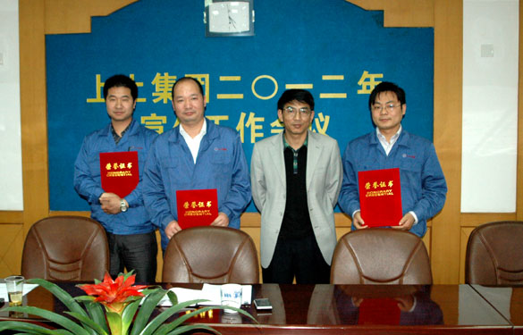 在對2011年宣傳工作先進個人與集體進行表彰頒獎后,朱副總在會上做了重要講話,他認為2011年企業(yè)宣傳工作緊跟企業(yè)發(fā)展形勢,成績是主流,作用很大,通過宣傳,在內(nèi)部提高了員工的凝聚力,在外部提升了企業(yè)形象。尤其是企業(yè)內(nèi)刊《上上文化》通過精心組織策劃,榮獲江蘇省企業(yè)報金獎20佳等稱號,這些成績的取得與各位通訊員、各部門分廠負責人的努力和重視是分不開的。