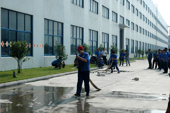 在隨后舉行的消防模擬演練中,各分廠、物流部、行政、木盤組等12個代表隊36人參加了此次活動。模擬演練分為兩個環節,第一個環節為滅火器定點滅火,第二個環節為接消防水帶滅火,分別檢驗員工對滅火器及消防水帶的掌握及運用情況。同時,為檢驗各兼職消防員的快速反應與配合默契程度,演練使用競賽制,每一位參賽員工都認真參與,嚴格按照消防要求進行操作,整個過程緊張有序,吸引了不少員工前來觀戰。經過激烈的角逐,最終木盤組獲得第一名,船纜分廠獲得第二名,超高壓分廠獲得了第三名。