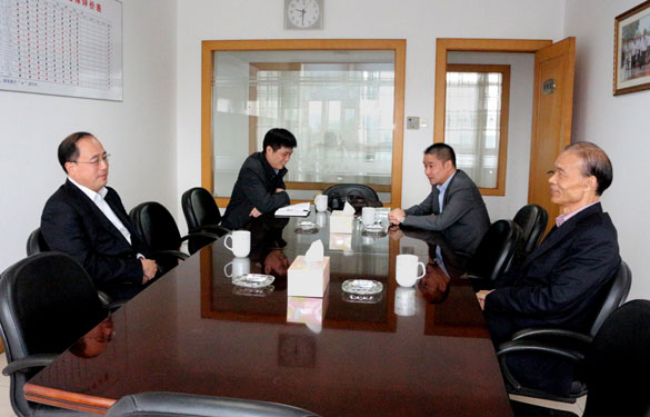 11月1日,溧陽市公安局局長劉新農一行來江蘇上上電纜集團走訪。集團董事長、總經理丁山華、常務副總經理丁志鴻在會議室進行了接待。