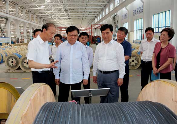 6月7日,中央第三巡回督導組組長、全國人大常委、環境與資源保護委員會主任委員、甘肅省委原書記、人大常委會原主任陸浩一行親臨江蘇上上電纜集團調研黨的群眾路線教育實踐活動落實情況。江蘇省、常州市、溧陽市相關領導陪同。集團董事長、總經理丁山華、常務副總經理丁志鴻等公司高層領導進行了熱情接待,并全程陪同督導組實地調研。