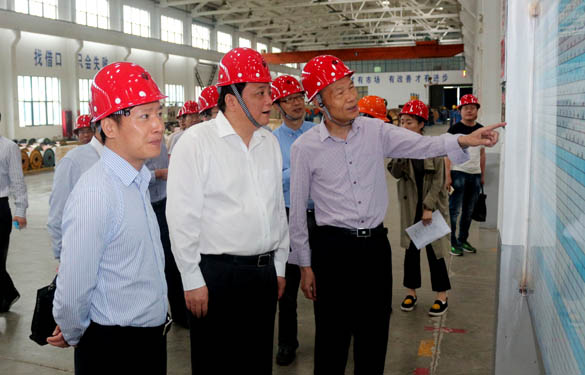 2016年6月12日,常州市委常委、常務副市長韓九云一行在溧陽市委書記蔣鋒、副市長蔡金龍等領導陪同下來江蘇上上電纜集團調研,集團董事長丁山華陪同韓市長一行參觀了西廠區特種電纜生產基地。
