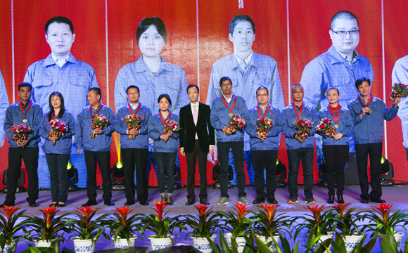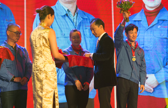 十大功勛員工、十大優(yōu)秀員工頒獎、給董事長送禮物精彩瞬間